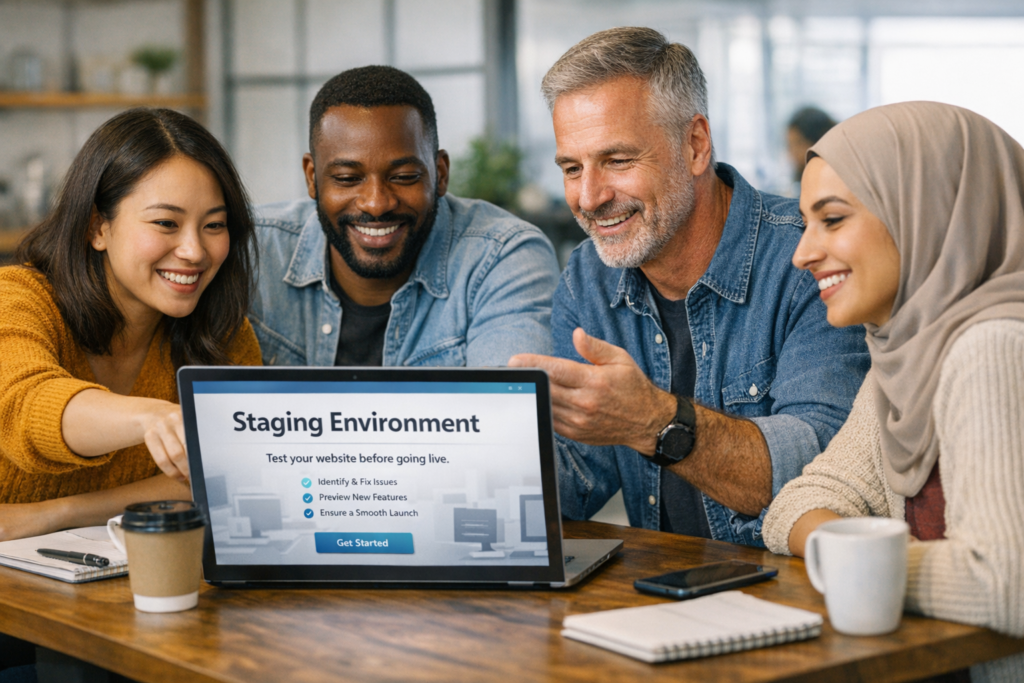 That’s where a Staging Environment becomes invaluable. It’s a safe, private copy of your website where you can test updates, redesigns, and new features without affecting your live site. In other words, it’s your digital safety net.